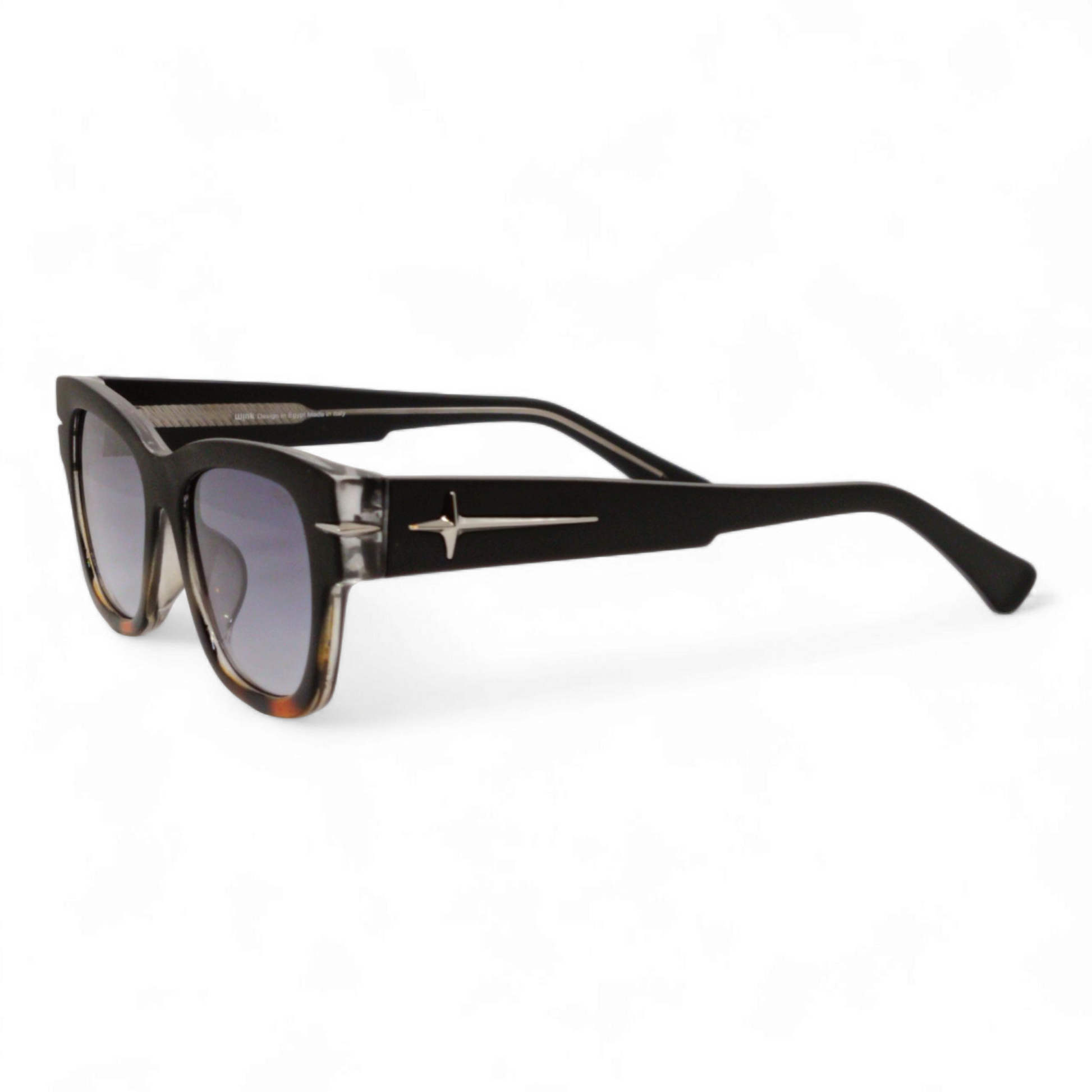 These sunglasses feature a high-quality acetate frame, offering durability and a luxurious feel. Designed in Egypt and crafted in Italy, they reflect premium craftsmanship with Italian hinges that ensure a secure fit. The design is both stylish and functional, making these sunglasses the perfect accessory for those who appreciate fine details and sophistication. Backed by a 1-year guarantee, the wink brand assures you of its commitment to excellence and luxury. Experience unparalleled quality with these sunglasses, a true statement piece for any occasion.