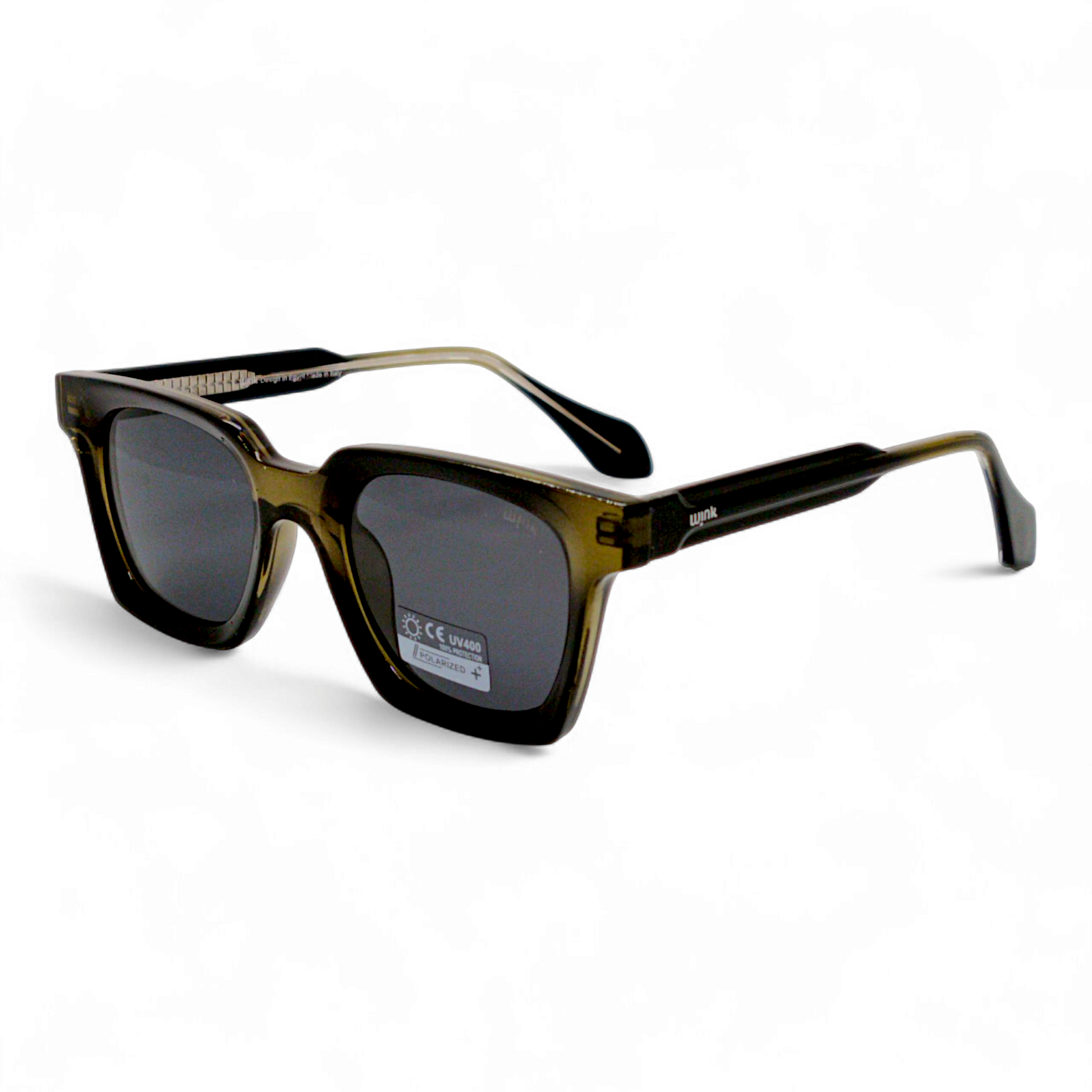 These sunglasses feature a high-quality acetate frame, offering durability and a luxurious feel. Designed in Egypt and crafted in Italy, they reflect premium craftsmanship with Italian hinges that ensure a secure fit. The design is both stylish and functional, making these sunglasses the perfect accessory for those who appreciate fine details and sophistication. Backed by a 1-year guarantee, the wink brand assures you of its commitment to excellence and luxury. Experience unparalleled quality with these sunglasses, a true statement piece for any occasion.
