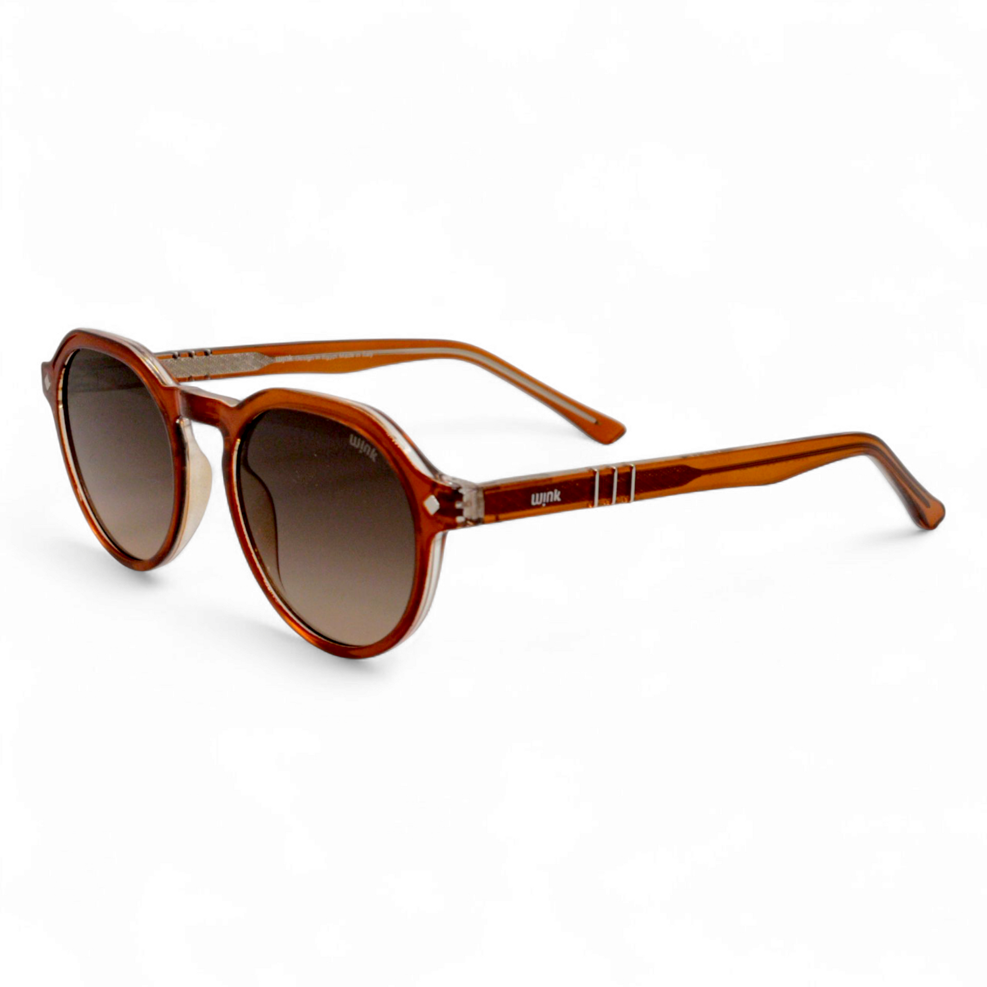 These sunglasses feature a high-quality acetate frame, offering durability and a luxurious feel. Designed in Egypt and crafted in Italy, they reflect premium craftsmanship with Italian hinges that ensure a secure fit. The design is both stylish and functional, making these sunglasses the perfect accessory for those who appreciate fine details and sophistication. Backed by a 1-year guarantee, the wink brand assures you of its commitment to excellence and luxury. Experience unparalleled quality with these sunglasses, a true statement piece for any occasion.
